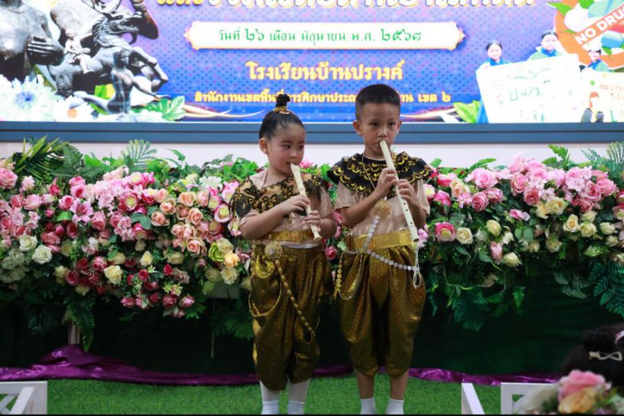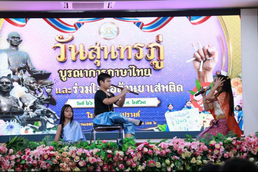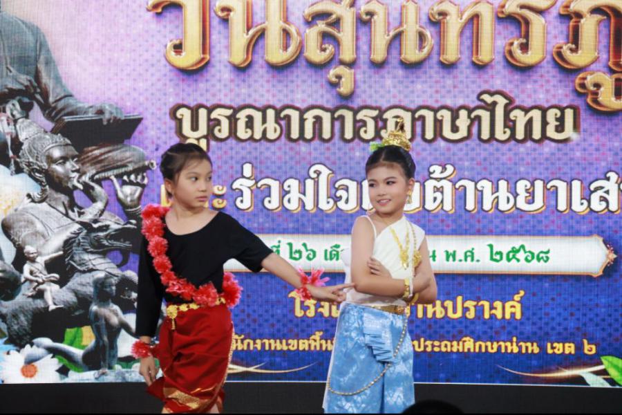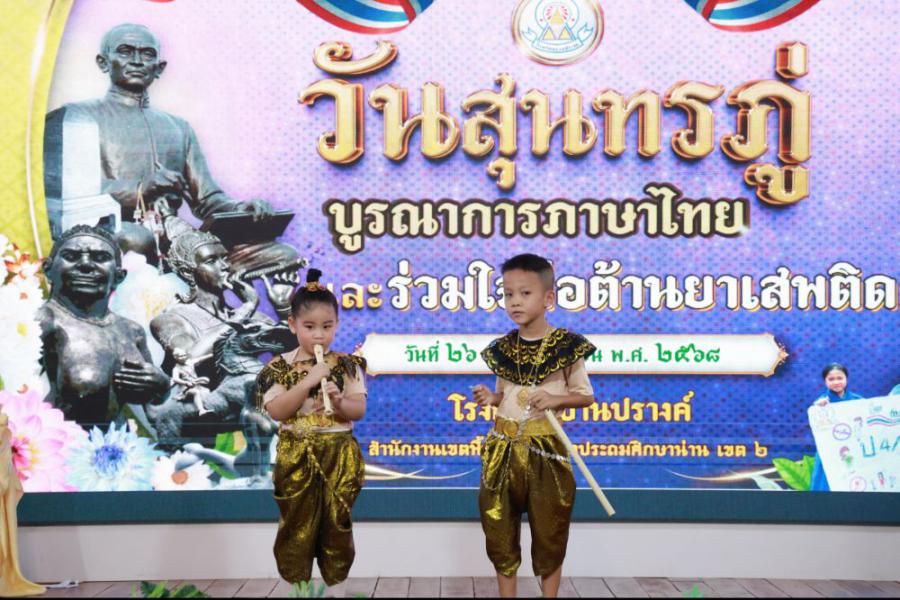 วันที่ 26 มิถุนายน 2568 (ภาคเช้า) โรงเรียนบ้านปรางค์ได้จัดและร่วมกิจกรรม "วันสุนทรภู่ บูรณาการภาษาไทยและร่วมใจต่อต้านยาเสพติด"นำโดยนายองค์การ วงค์เรือง ผู้อำนวยการโรงเรียน นางชัญธิกัลป์ภรณ์ นันทะน้อย นางสาวปณิสรา วงสุยะ รองผู้อำนวยการโรงเรียน คณะครูบุคลากรทางการศึกษาและนักเรียนตั้งแต่ระดับชั้นอนุบาล 2 ถึงระดับชั้นประถมศึกษาปีที่ 3 ร่วมกิจกรรมในครั้งนี้ การจัดกิจกรรมมีวัตถุประสงค์ 1. เพื่อให้นักเรียนได้แสดงความรู้ความสามารถรู้จักประวัติและวรรณกรรมของสุนทรภู่กวีเอกของโลก 2. เพื่อเชิดชูภาษาไทยที่เป็นภาษาประจำชาติไทยและดำเนินชีวิตให้ห่างไกลจากยาเสพติด 3. เพื่อส่งเสริมทักษะให้นักเรียนใช้ทักษะทางภาษาไทยด้านการฟัง พูด อ่าน เขียน ซึ่งเป็นทักษะพื้นฐานของการเรียนรู้ทุกรายวิชาได้ถูกต้องเหมาะสม และส่งเสริมให้นักเรียนได้แสดงความสามารถทางภาษาไทย ได้อย่างเต็มศักยภาพ S:1