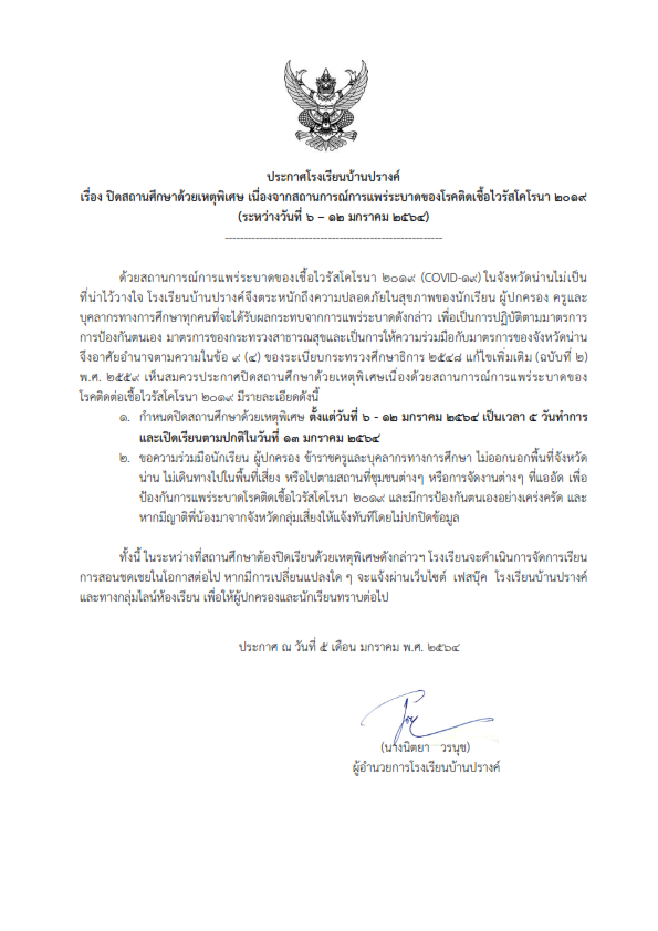 ประกาศหยุดเรียนในกรณีพิเศษ