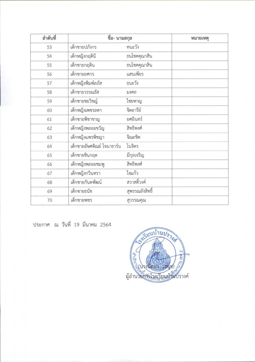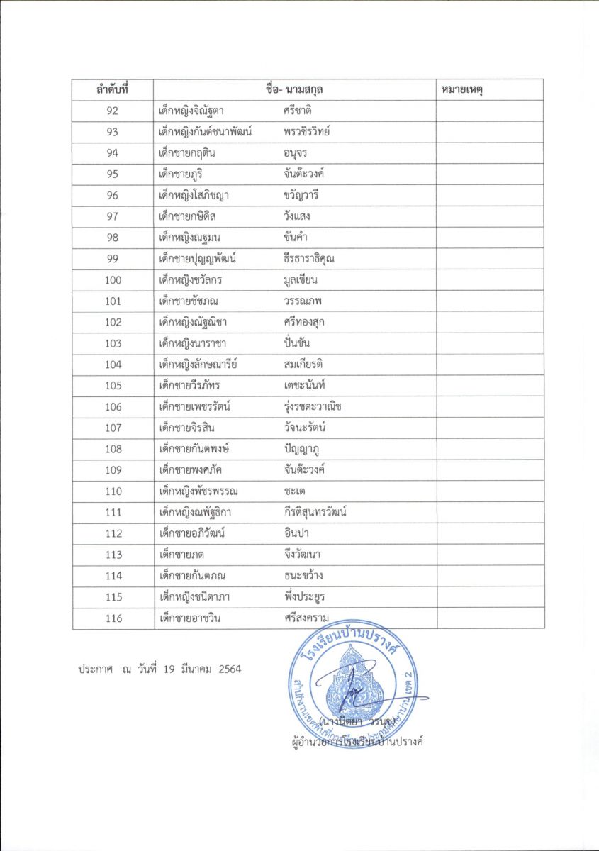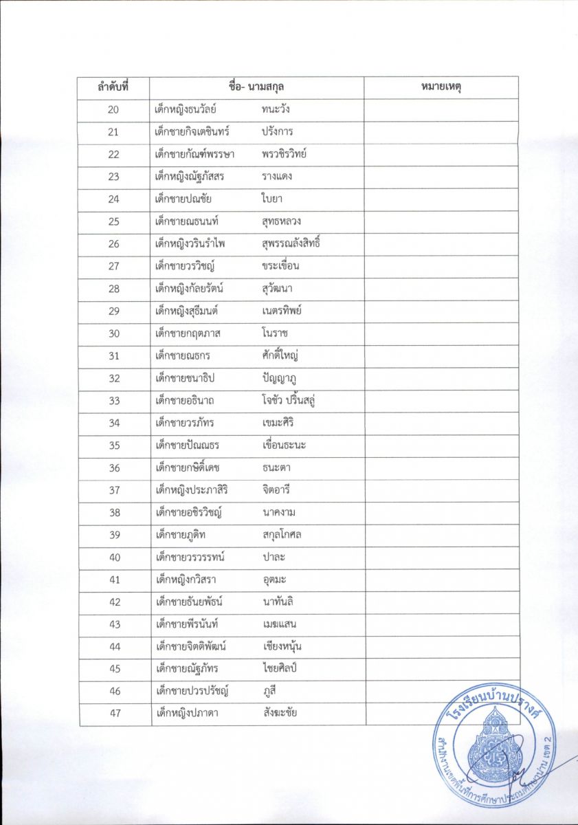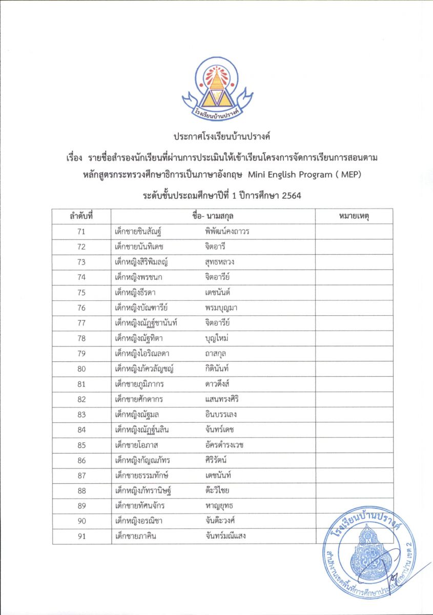 ประกาศรายชื่อนักเรียนที่ผ่านประเมินความพร้อมเข้าเรียน ระดับชั้นอนุบาล2 และชั้นประถมศึกษาปีที่1 โครงการจัดการเรียนการสอนตามหลักสูตรกระทรวงศึกษาธิการ เป็นภาษาอังกฤษ Mini English Program (MEP) ปีการศึก