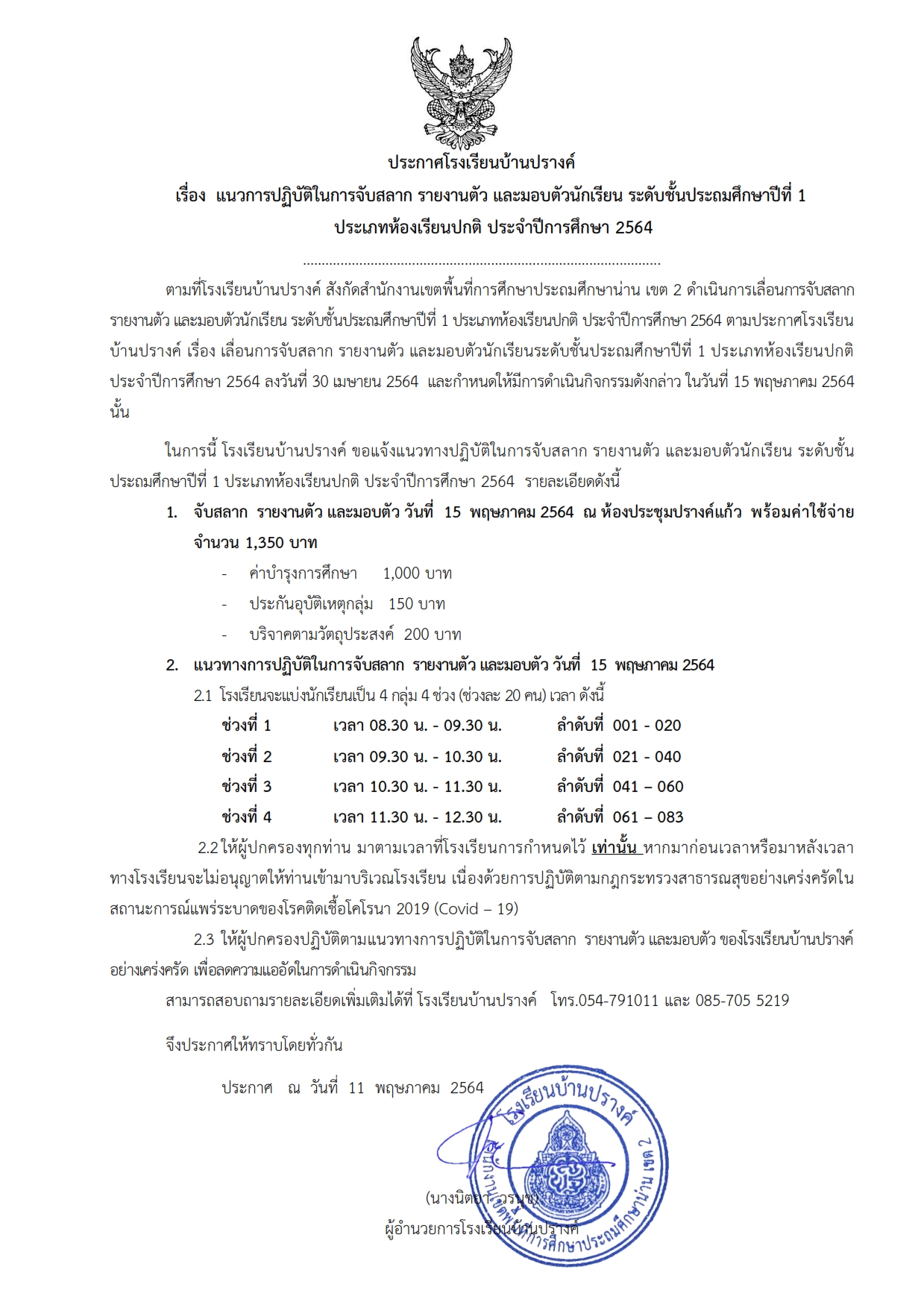 แนวการปฏิบัติในการจับฉลาก รายงานตัว และมอบตัวนักเรียน ระดับชั้นประถมศึกษาปีที่ 1