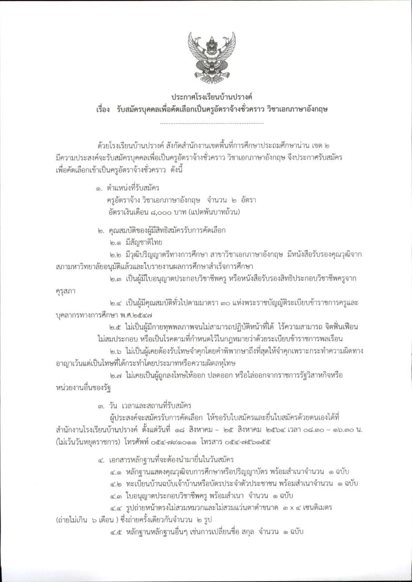 รับสมัครบุคคลเพื่อคัดเลือกเป็นครูอัตราจ้างชั่วคราว วิชาภาษาอังกฤษ
