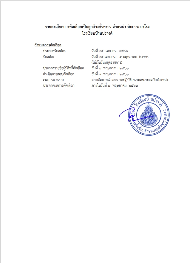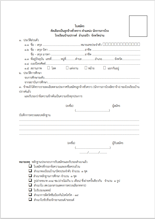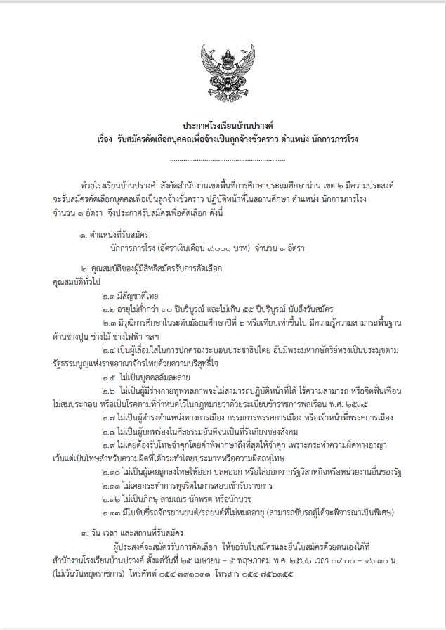 รับสมัครคักเลือกบุคคลเพื่อจ้างเป็นลูกจ้างชั่วคราว ตำแหน่งนักการภารโรง 1 ตำแหน่ง