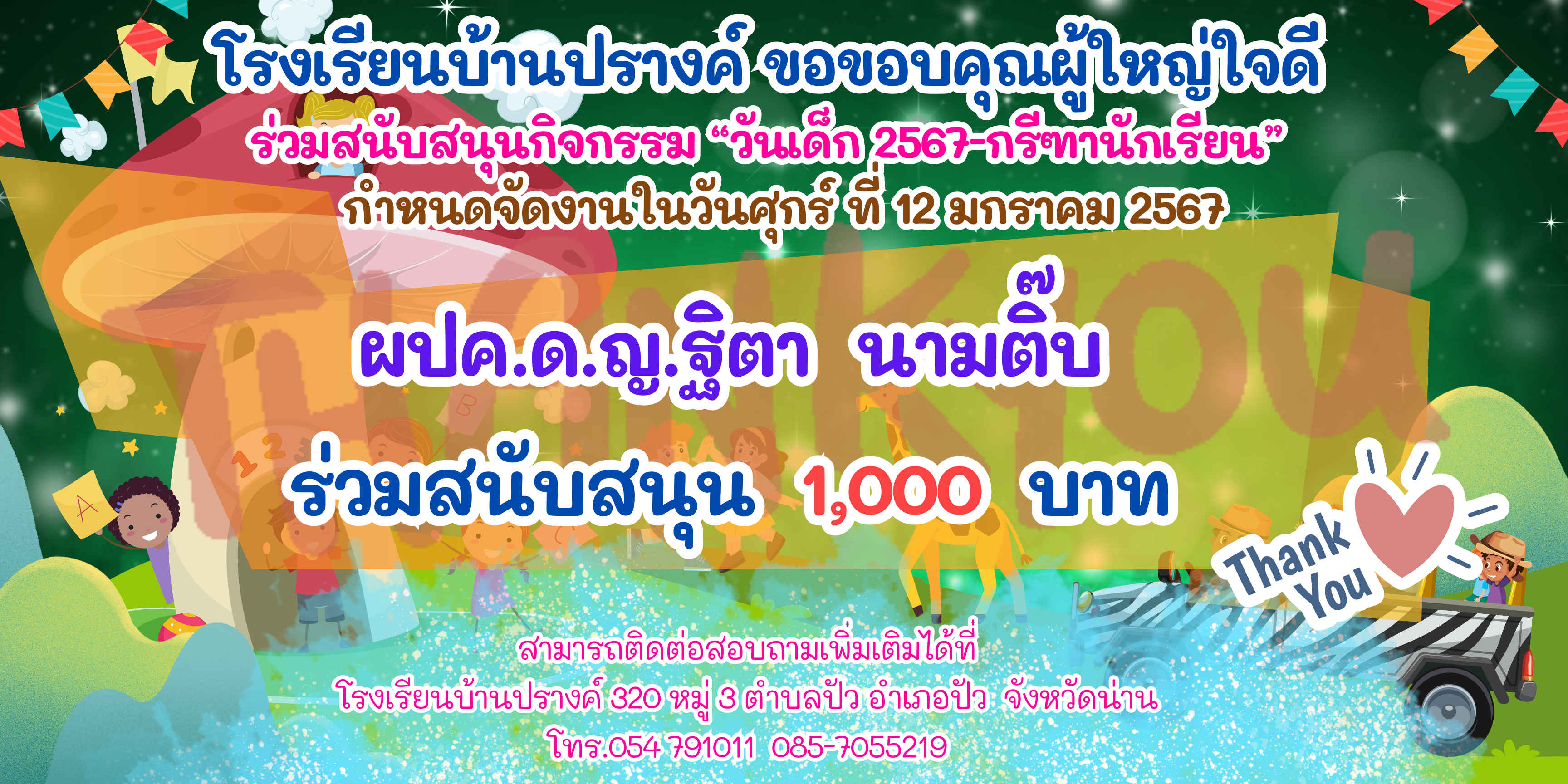 ผปค.ด.ญ.ฐิตา นามติ๊บ ผู้ใหญ่ใจดีร่วมร่วมสนับสนุนกิจกรรม วันเด็ก 2567และกิจกรรมกรีฑานักเรียน 2566