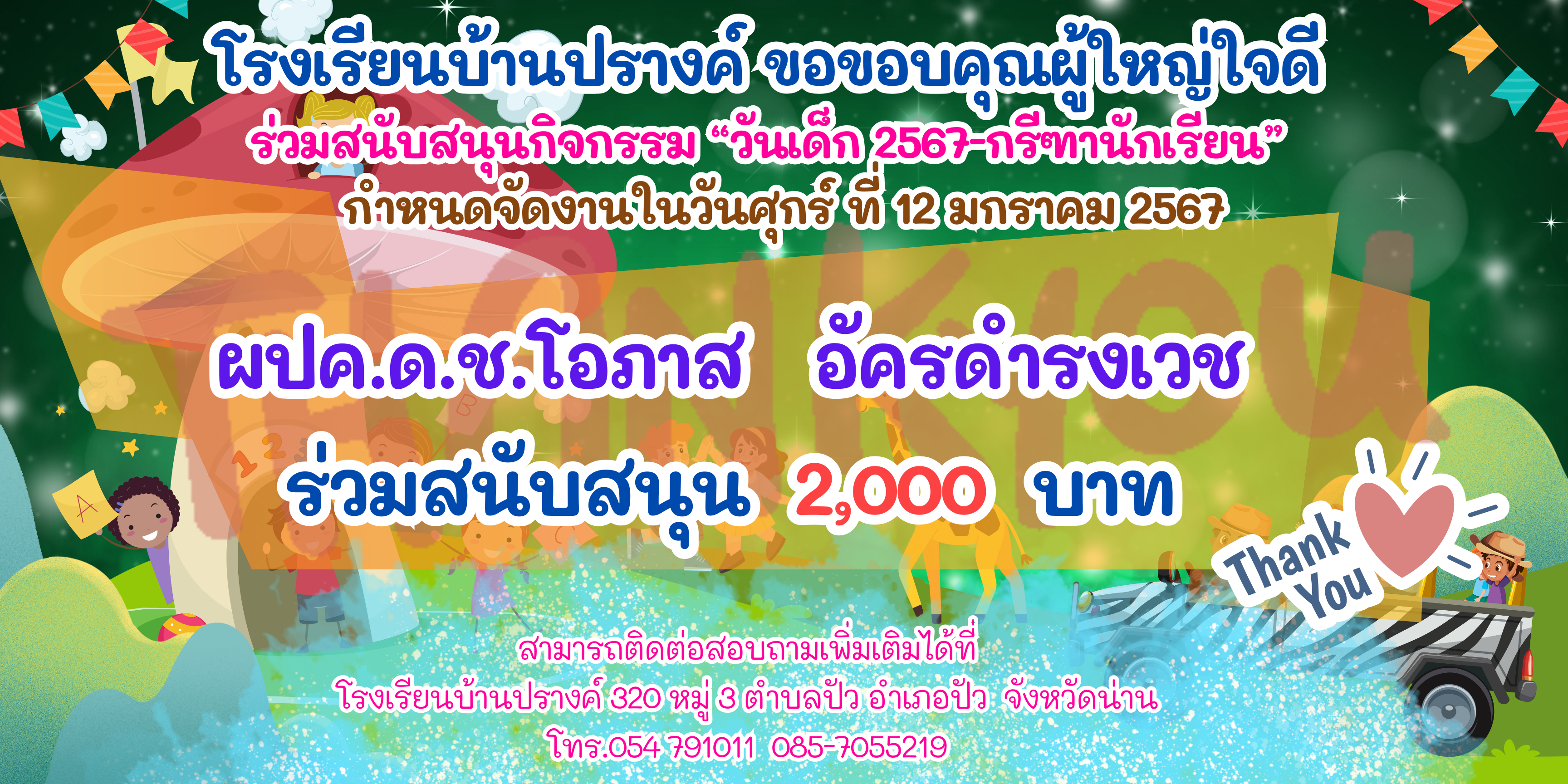 ผปค.ด.ช.โอภาส อัครดำรงเวช ผู้ใหญ่ใจดีร่วมร่วมสนับสนุนกิจกรรม วันเด็ก 2567และกิจกรรมกรีฑานักเรียน 2566