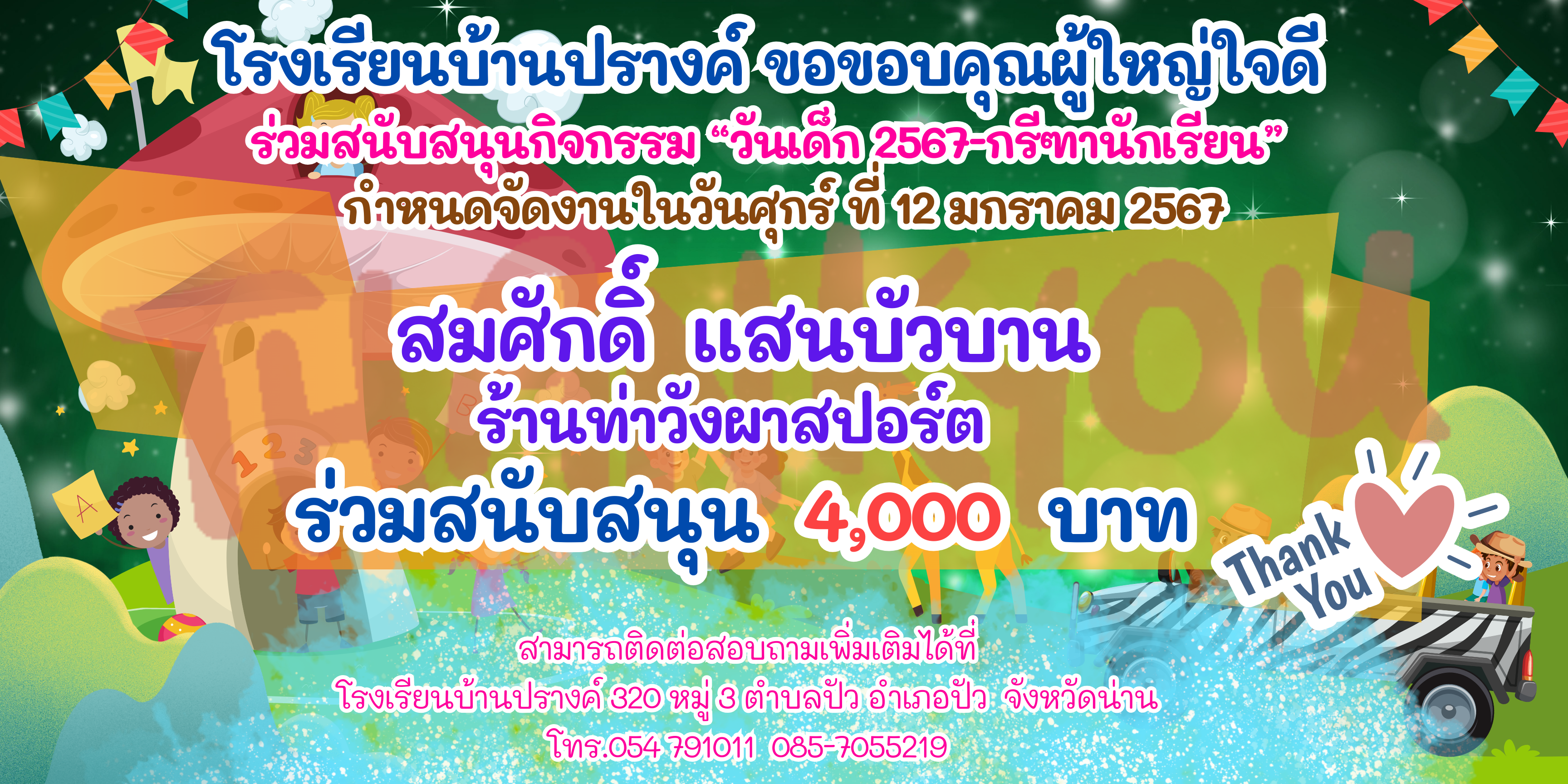 คุณสมศักดิ์ แสนบัวบาน ผู้ใหญ่ใจดีร่วมร่วมสนับสนุนกิจกรรม วันเด็ก 2567และกิจกรรมกรีฑานักเรียน 2566