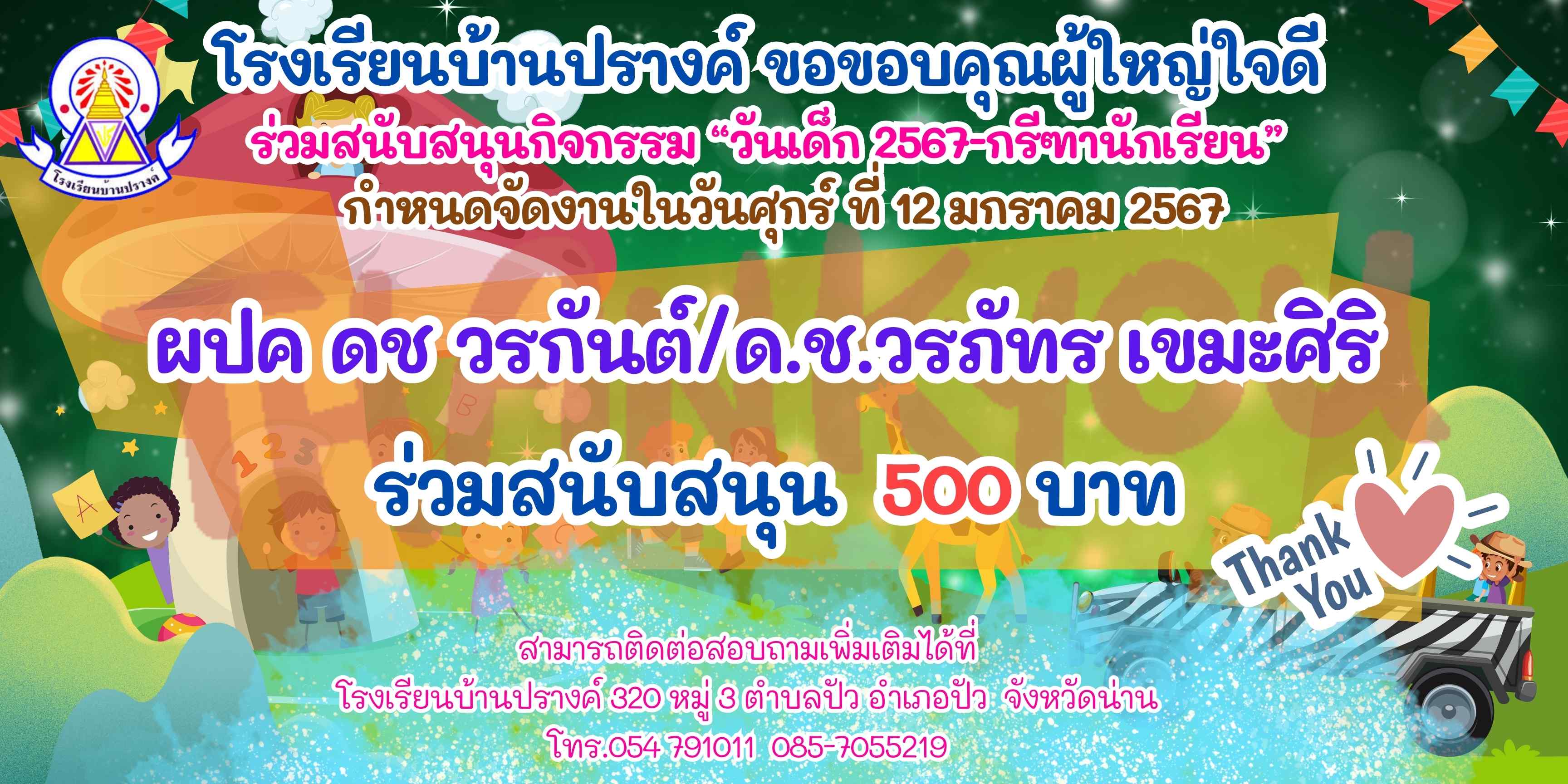 ผปค ดช วรกันต์/ด.ช.วรภัทร เขมะศิริ ผู้ใหญ่ใจดีร่วมร่วมสนับสนุนกิจกรรม วันเด็ก 2567และกิจกรรมกรีฑานักเรียน 2566