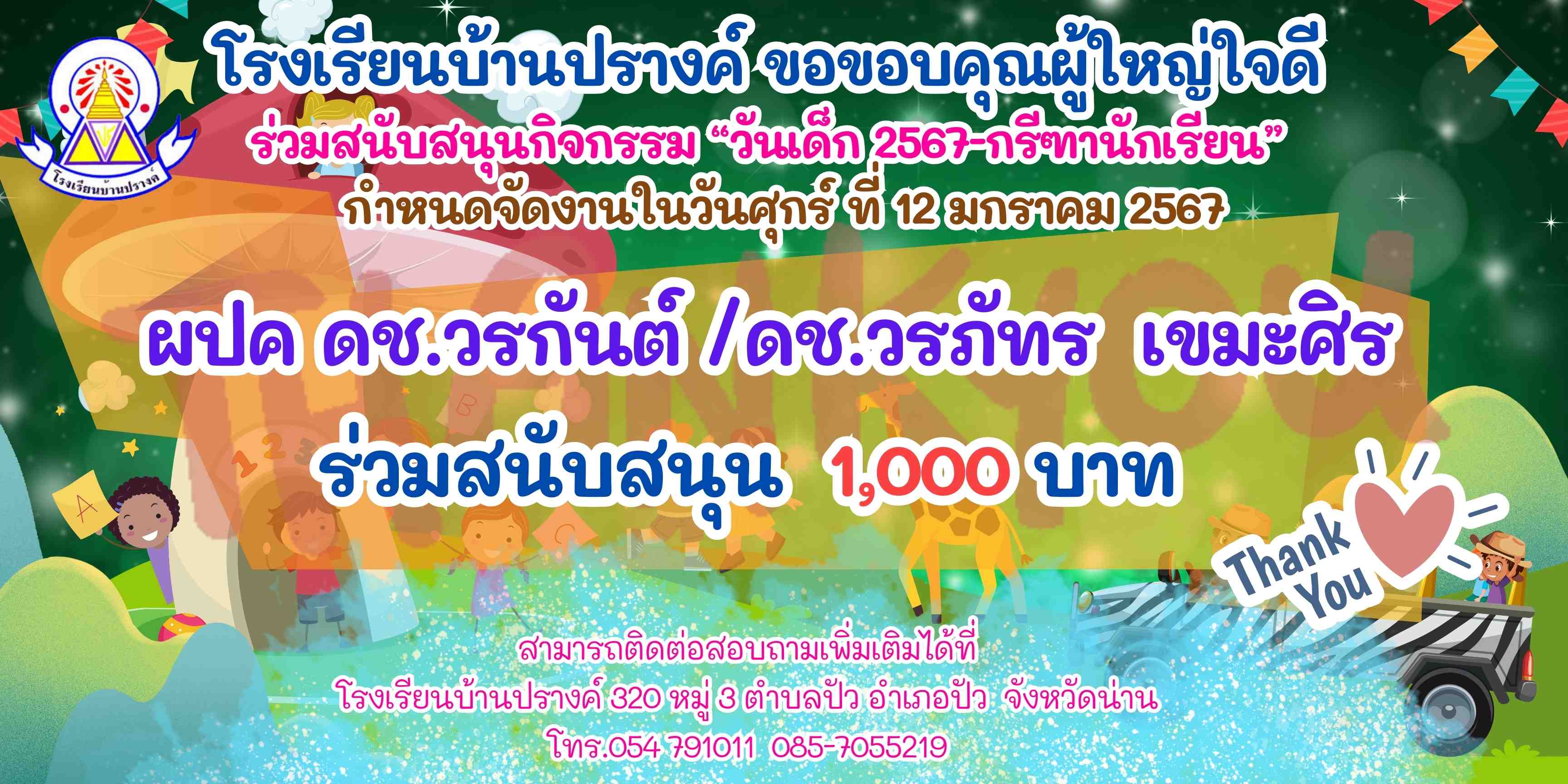 ผปค ดช.วรกันต์ /ดช.วรภัทร เขมะศิร ผู้ใหญ่ใจดีร่วมร่วมสนับสนุนกิจกรรม วันเด็ก 2567และกิจกรรมกรีฑานักเรียน 2566