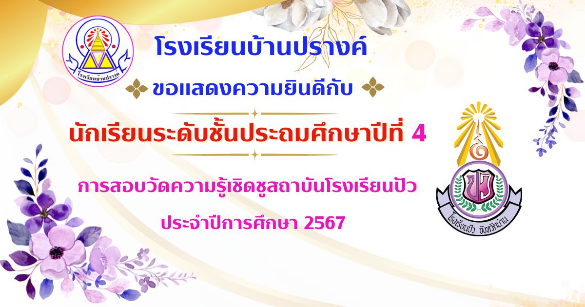 ขอแสดงความยินดีกับนักเรียนชั้น ป.4 มีคะแนนรวมทุกวิชา 10 อันดับแรก การสอบวัดความรู้เชิดชูสถาบันโรงเรียนปัว ประจำปีการศึกษา 2567