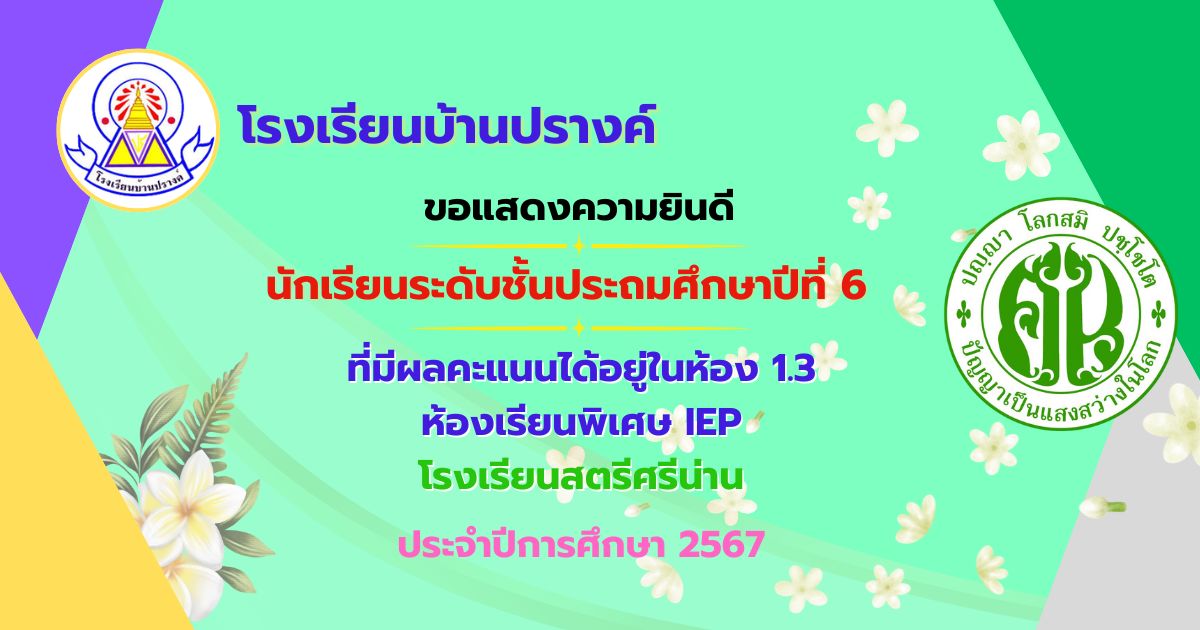 ขอแสดงความยินดีกับนักเรียนชั้นประถมศึกษาปีที่ 6 ที่ได้เลือกเข้าห้องเรียน 1.3 ห้องเรียนพิเศษ IEP การสอบวัดความรู้โรงเรียนสตรีศรีน่าน