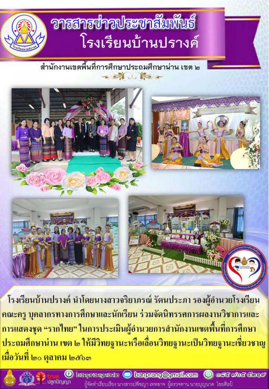 โรงเรียนบ้านปรางค์ ร่วมจัดนิทรรศการผลงานวิชาการและการแสดงชุด ?รากไทย? ในการประเมินผู้อำนวยการสำนักงานเขตพื้นที่การศึกษาประถมศึกษาน่าน เขต ๒